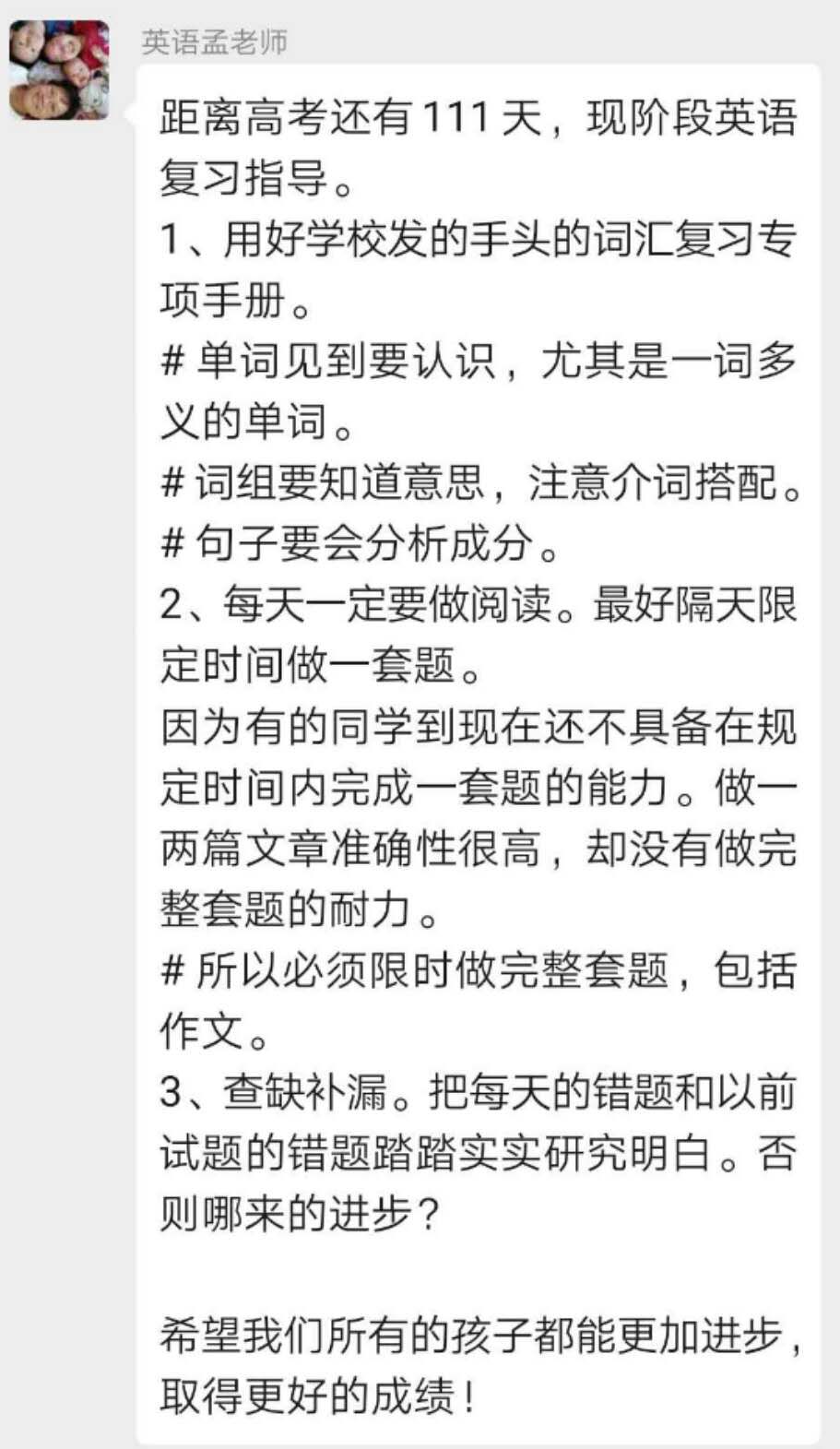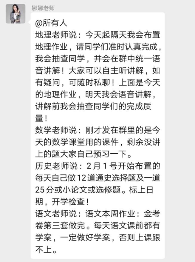每一位老师的直播课都是针对高考,构建了完备的知识体系;当遇到卡顿时,工作人员会以最快的速度解决问题;每天都有前一天的录播回放;老师会为我们精选作业习题,并在网上批阅。在晚课,老师会耐心答疑,拓展知识;课后有疑问,老师更会牺牲自己的休息时间为我们答疑。疫情期间,班主任和科任教师一直陪伴着我们备战高考,有你们在,我们无需害怕。