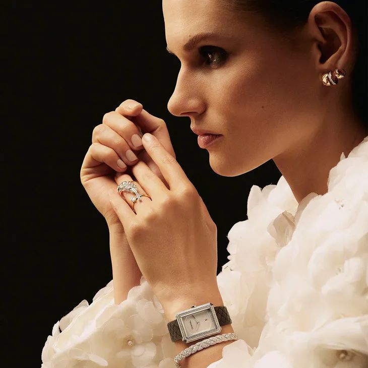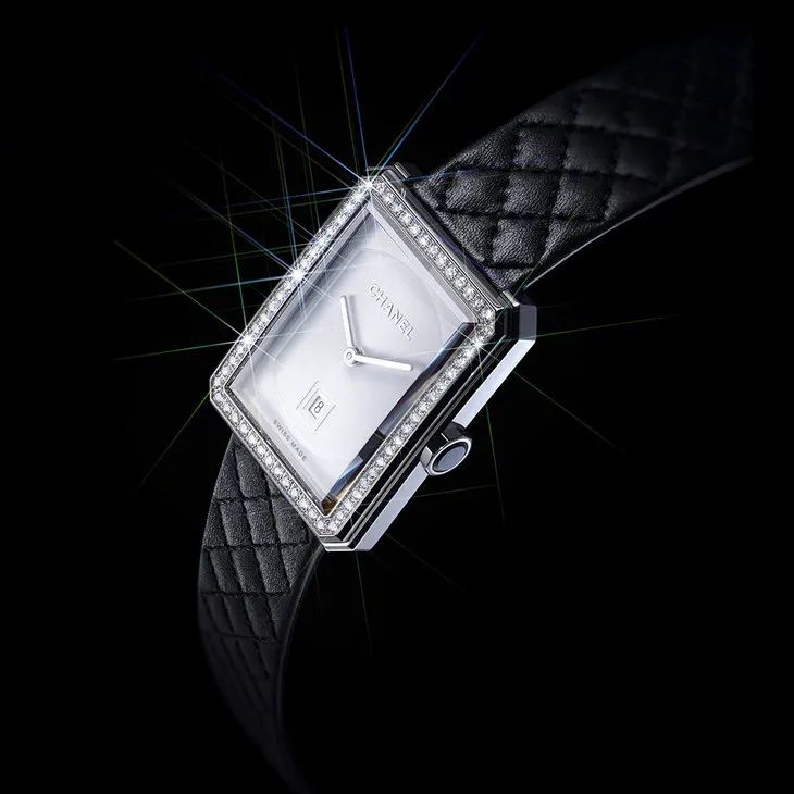 新款BOY·FRIEND腕表最大的特色在于采用黑色菱格纹绗缝表带,将CHANEL经典元素融于腕表之间,以纯粹的线条与完美比例,显露前卫与克制兼备的魅力,很难不俘获个性女孩的心。