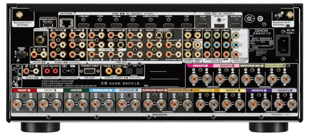 原本Denon要开发一部AVC-A1HD(2007年在日本上市、台湾是在2008年引进美规孪生机AVR-5308CI)后继机的计划因为大环境恶劣而停滞,所幸他们撑过了难熬的日子,最近几年景气状况逐渐好转,让Denon终于在三年多前重新启动迟来的计划,研发的成果就是本篇的主角“AVR-X8500H”。AVR-X8500H早在半年多前就已经倍受玩家期待,我相信大家会特别注意到它的原因都一样:因为AVR-X8500H是全世界至今为止“声道数最多”的环绕扩大机,它有13.2声道输出、完全不必加接后级,只要这一部就能让7.2.6声道(或9.2.4声道)喇叭全数发声。然而当我开始更进一步去理解AVR-X8500H,才赫然发现当初我只关注声道数还真是犯了认知不足的毛病。