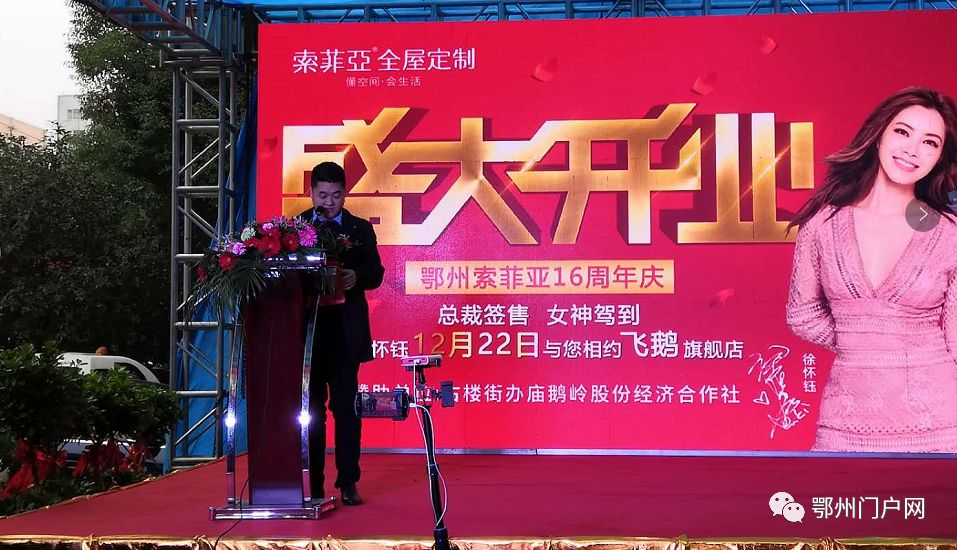 万众瞩目,不负期待。12月22日上午9时30分,伴随着精彩的舞蹈表演,索菲亚全屋定制开业盛典正式开始。鄂州装饰行业办、鄂州楚商联合会、索菲亚厂家代表、鄂州索菲亚董事长等十多位领导,以及鄂州索菲业新老VIP嘉宾参加了活动。