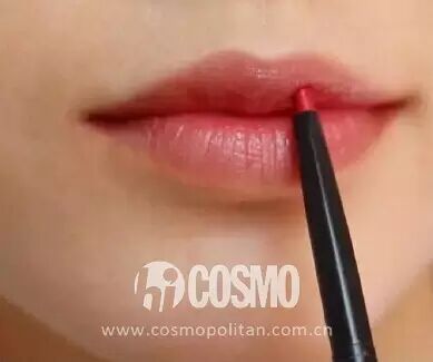 Step3:用唇线笔将M唇特有的海鸥线的地方加深,或者你也可以用唇膏在M处涂抹。