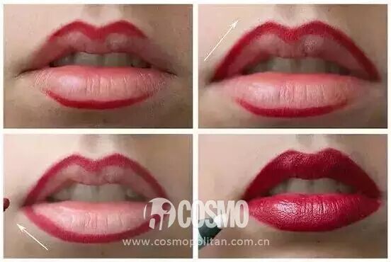 Step4:M字唇最重要的就是立体感,用唇膏上色的时候要打造明暗对比,突出M形唇的效果。