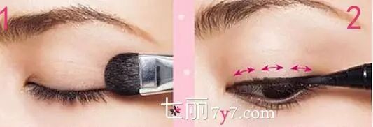 Step1:首先用肤色的眼影打底,可以选择金色或者米色的的眼影打底。