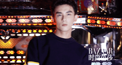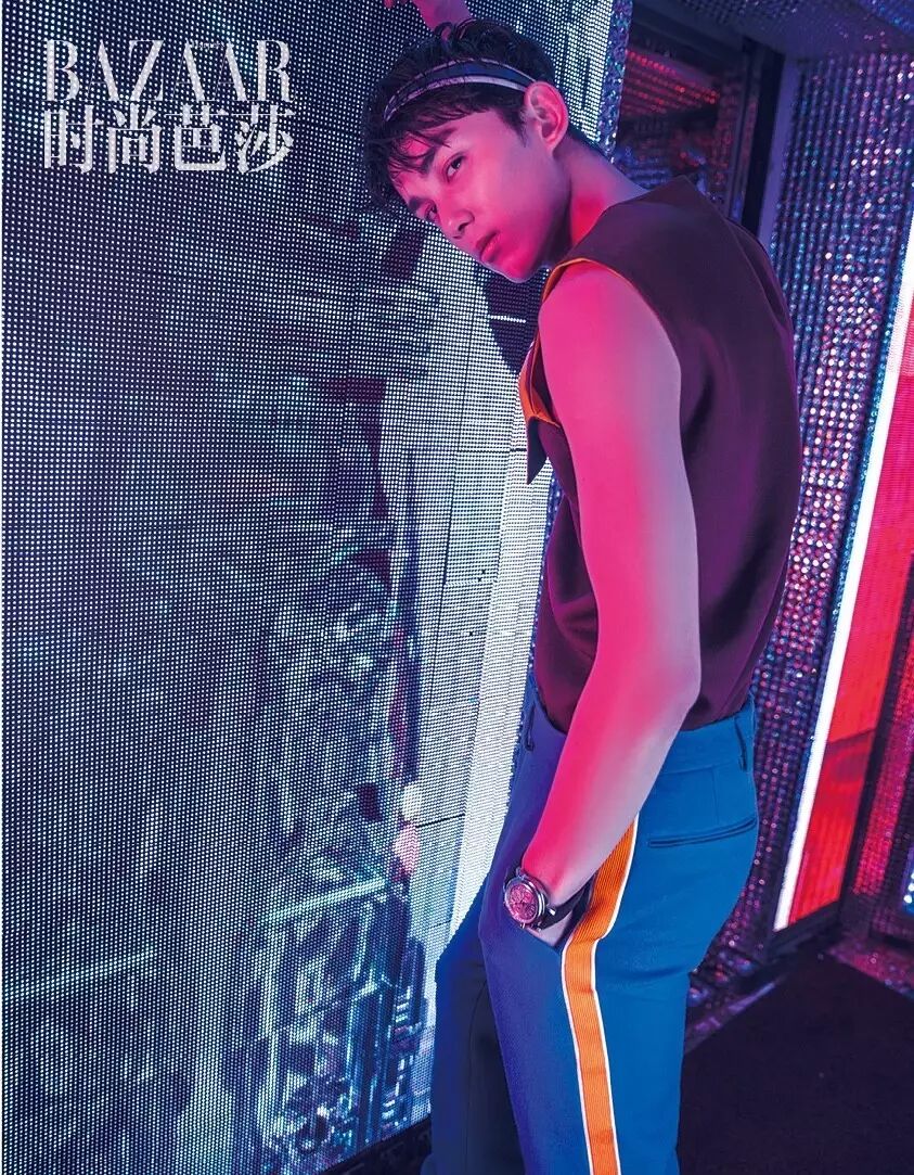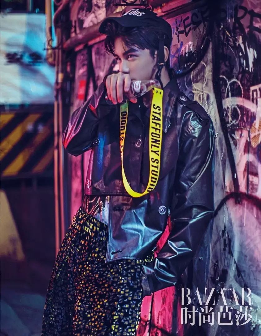 吴磊:蓝色针织衫、漆点长裤 All by RAZZLE