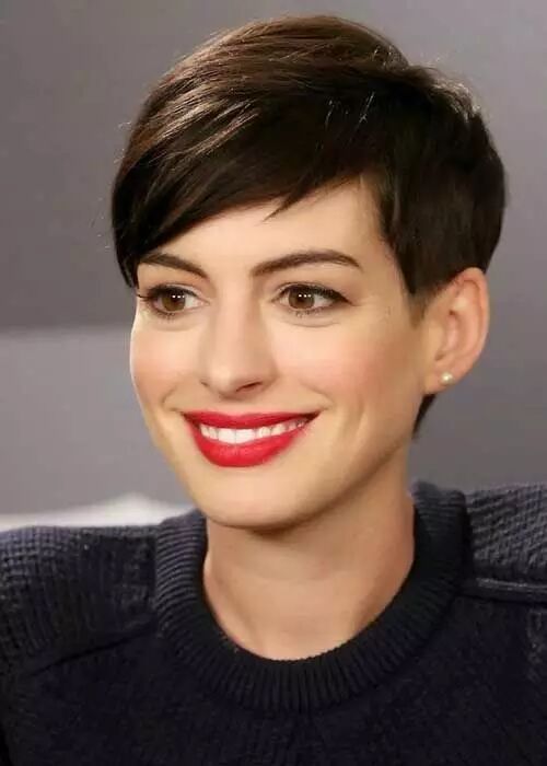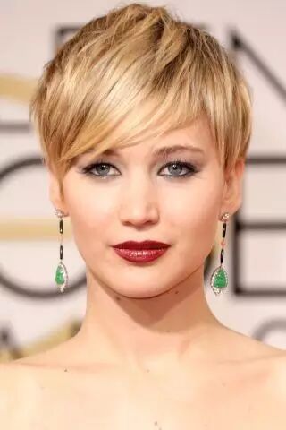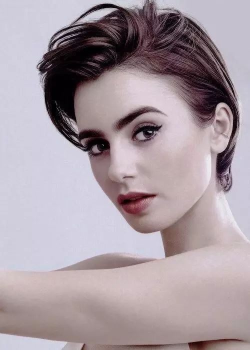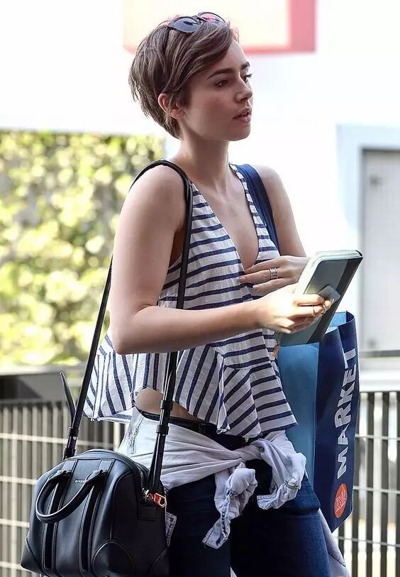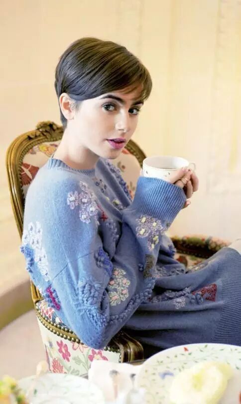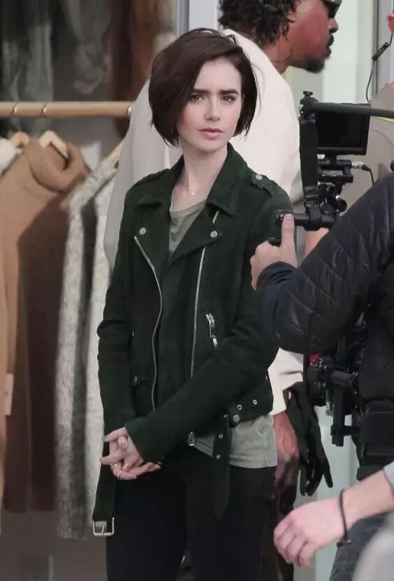 小小的圆形脸剪精灵头Madam觉得是最好看的~特别俏皮,如果想要让脸看起来瘦一些,就要选择侧分较长的刘海,修饰脸部线条帮助瘦脸~Lily Collins的发型圆脸小马达可以参考哟~▼