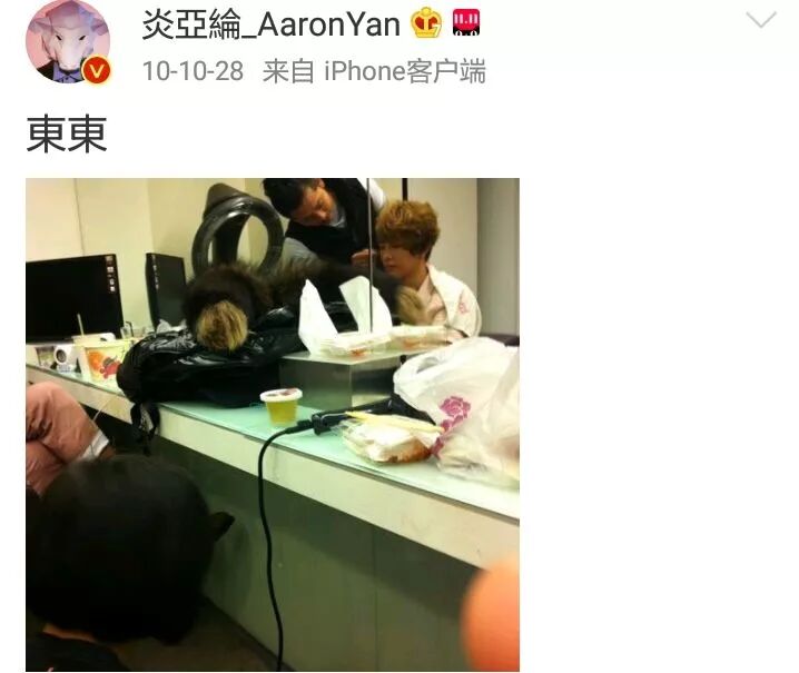 10-11年是俩人感情最好的时候,采访上被扒出了各种靠肩、躺腿的亲密照,炎亚纶在微博上也是“三句不离大东”。