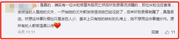 一个名叫“丽玲”的米粒脑昏迷了36小时,饭圈有不少粉丝都通过丽玲的丈夫得知了丽玲脑死亡的消息。