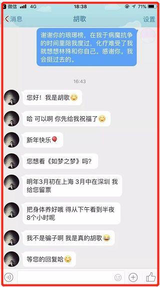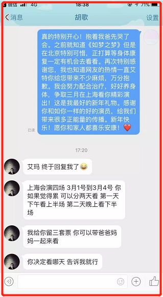 在当天下午,她也如愿收到了胡歌回复的私信。