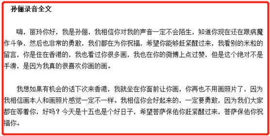 孙俪得知这件事之后,特意给丽玲录制了音频。