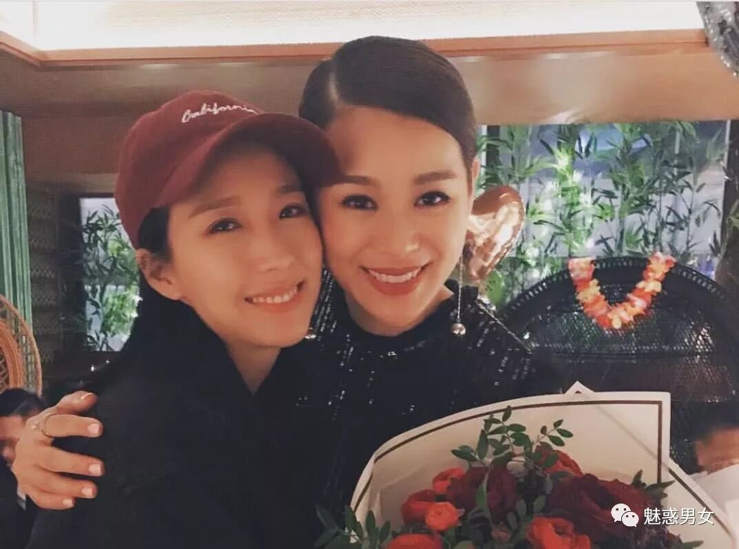 胡杏儿与好友姚子羚的合照,姚子羚还送上一大束玫瑰鲜花作为礼物。