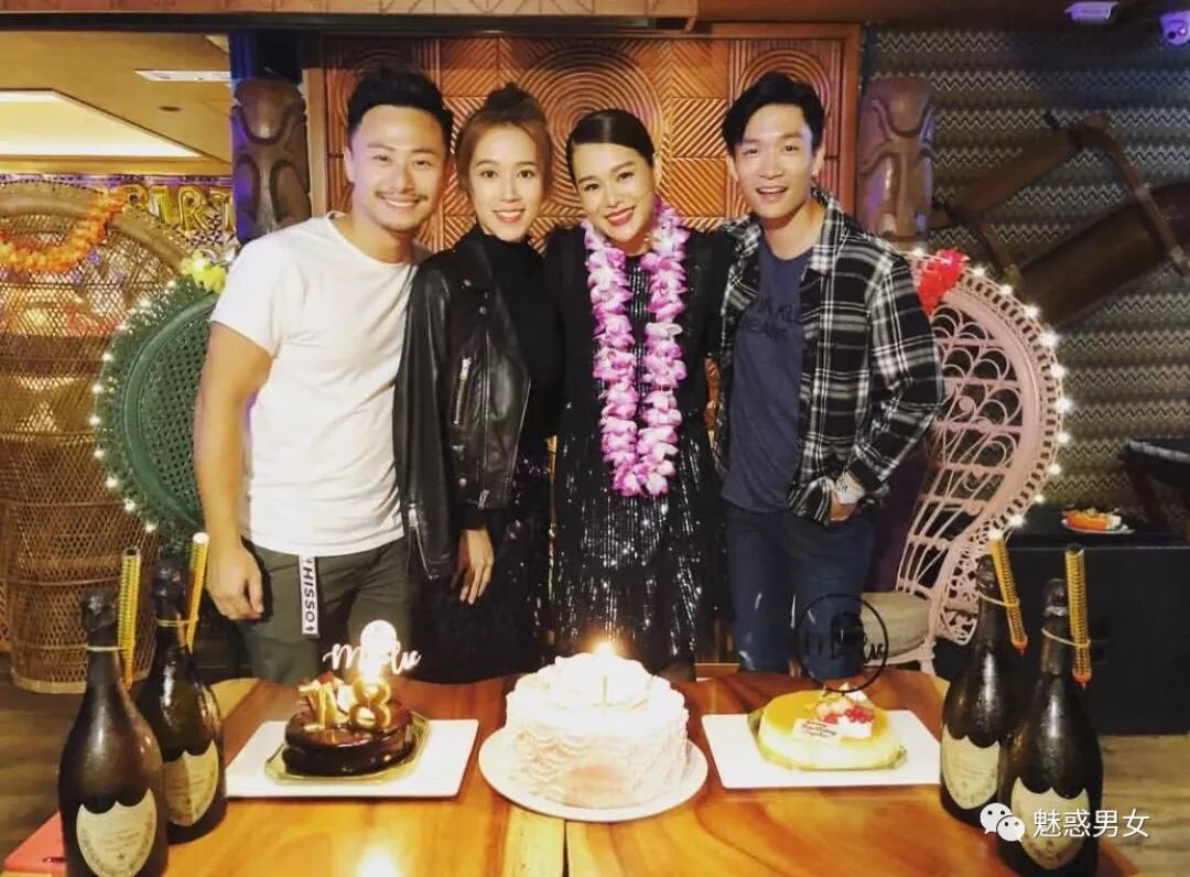 胡杏儿与《冲上云霄2》演员傅佳莉、杨潮凯、周志文的合照,几位演员经常聚会,关系很好。