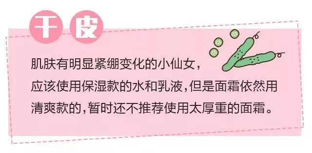 护肤重点:补水保湿和滋润,修复细纹,缩小毛孔。