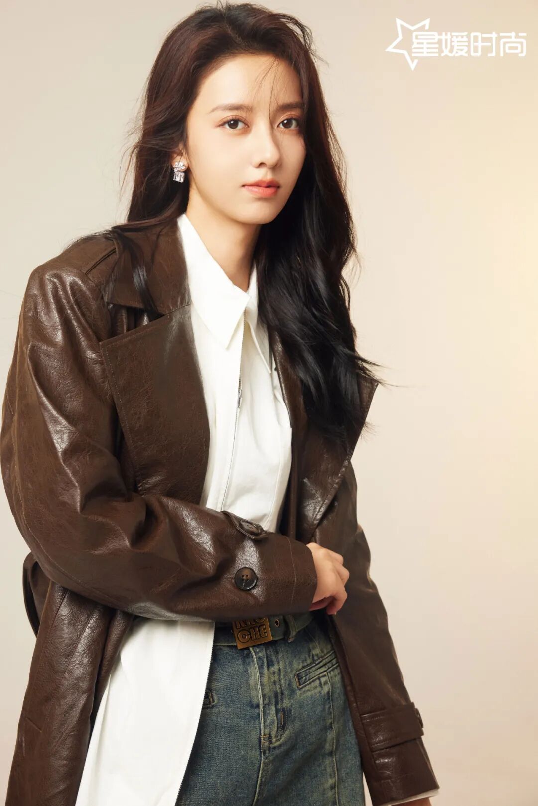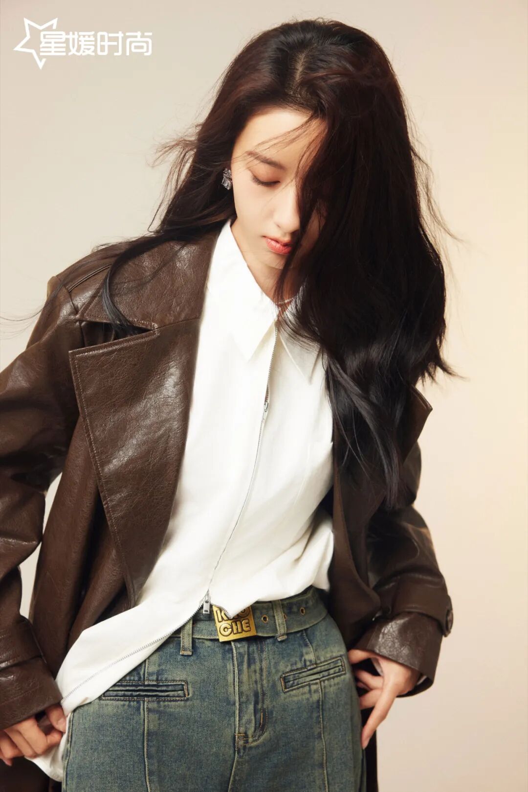 她的日常着装风格简约而不失个性,既追求舒适,又不失时尚感。她说,“我这个其实就是日常通勤风,白衬衫配牛仔裤,然后再搭一个长款的皮衣外套。”