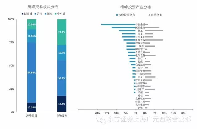 涛峰2015年的投资进行了充分的分散。我们的投资组合包括了超过三百只股票,并且跨越几乎所有行业及板块。我们的投资组合产业板块构成是动态的,并且依照当前的投资机会不断轮动。