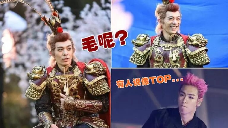 造型照中见,柏豪染上红头发,不过脸上就没有孙悟空的脸毛,依然露出靓仔样!不少网民看到之后都指柏豪好像Bigbang成员T.O.P......但一些网民似乎不like这个造型,觉得孙悟空没有毛会不会太假了?“就是人扮猴子。”、“这只猴子中辐射?”,个个给差评喎。