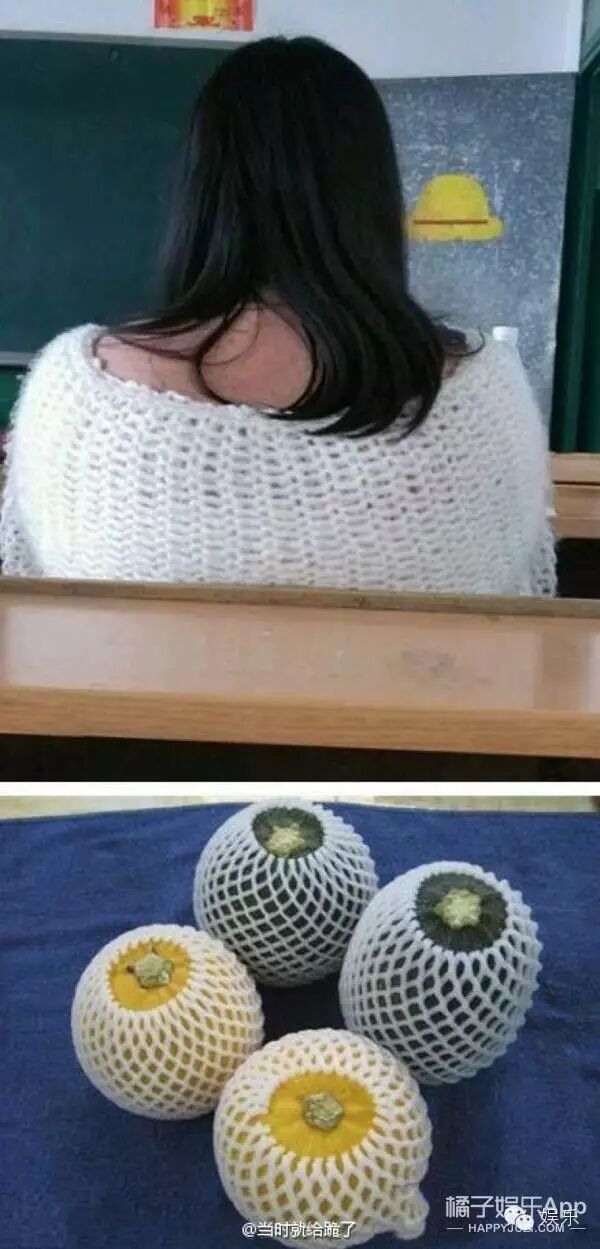 ▼某天上课突然发现前排同学穿了个水果包装网来......