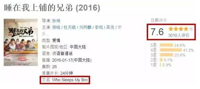 影片改编自同名网剧《睡在我上铺的兄弟》,由张琦执导、高晓松担纲总监制,陈晓、杜天皓、刘芮麟、李现领衔主演,注意到了英文名称——