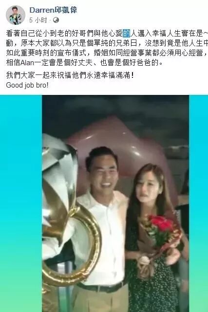 最近,台湾演员柯有伦在好友的见证下,终于向圈外女友求婚了~