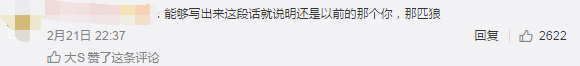 微博热评第一是这样一段话:“能够写出这段话就说明还是以前的那个你,那匹狼。”