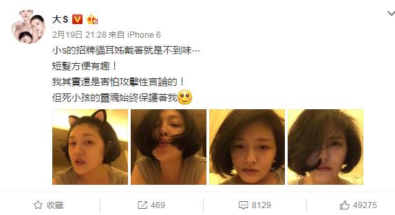 2月21日晚,大S通过微博发出了一段感叹:“在这自媒体的世界里,每个公众人物都想放飞自我!但一飞了,就会引起争议!一旦引起了争议,当你想关注的公众议题就会被模煳了焦点,因此很难再取信于民!这是个取舍两难的选择......到底要做个牺牲自我的模范生?还是既能自由放飞又能取信于大众的公众人物?完全取决于你长久累积的成绩单。难!”