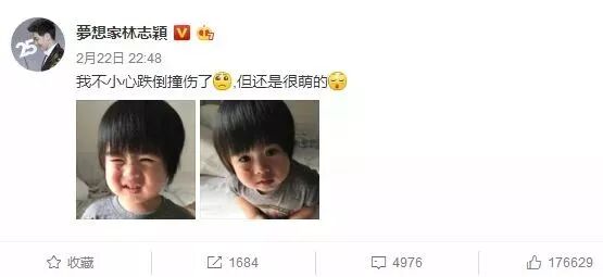 最近,林志颖又晒出了小儿子Kyson脸部受伤的照片,还模仿小家伙的语气说道:我不小心跌倒撞伤了,但还是很萌的。