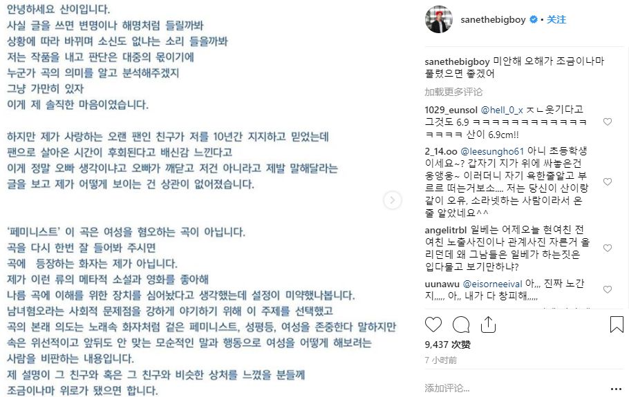 之前说到了San E因为歧视女性被抵制,当时因为他在歌里DISS女生,导致工作被取消,才逼不得已道歉。