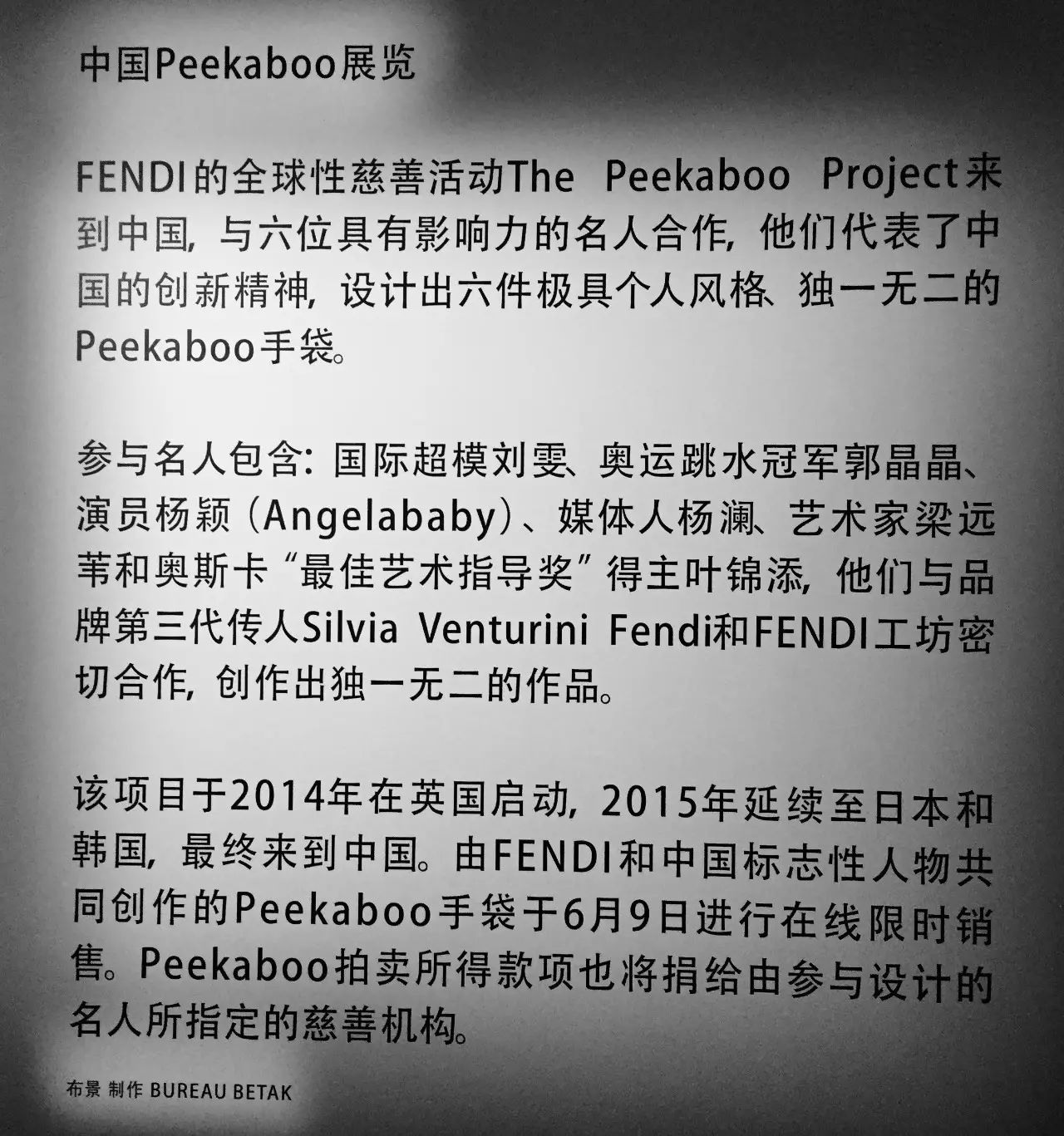 FENDI这次来到了三里屯红馆,开启了一次慈善与艺术之旅。现场展示了6位名人所设计出的PEEKABOO手袋,同时展出的还包括早前于伦敦、东京及首尔Peekaboo Project中的10款精选作品。