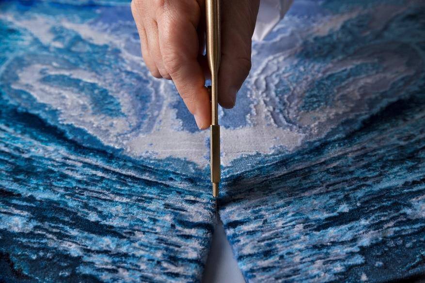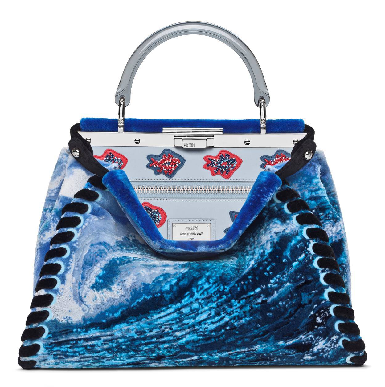 应用了极致的古老法式编织毛毯工艺—Punto Tappeto,并将此种传统工艺与创新高科技技术相融合,制作出的手袋令人想起蔚为壮观的碧蓝色大海。
