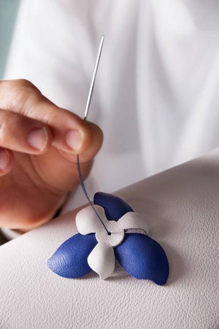 以多色皮革和由串珠组成的“兰花”, 以此鼓励现代女性自信而独立的态度。