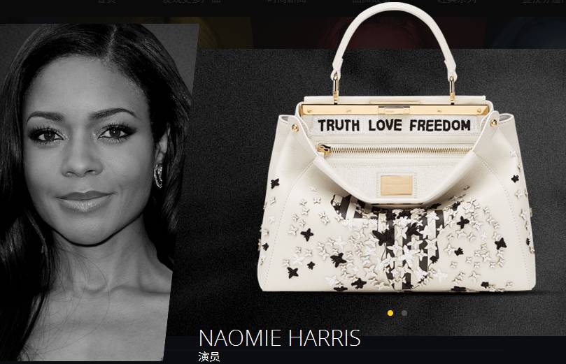 娜奥米哈里斯Naomie Harris设计的一款大号灰白色真皮PEEKABOO手提包,饰以非洲地图影像丝网印花,黑白相间垂直条纹,彰显平等人权的理念。