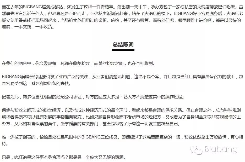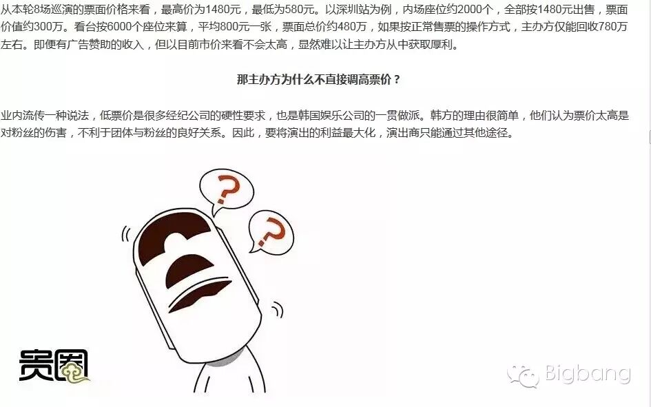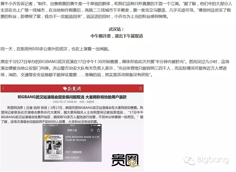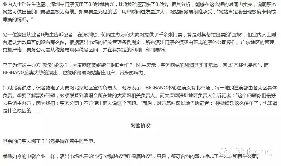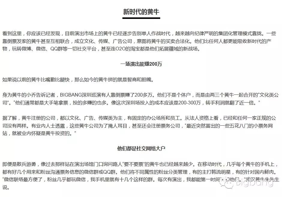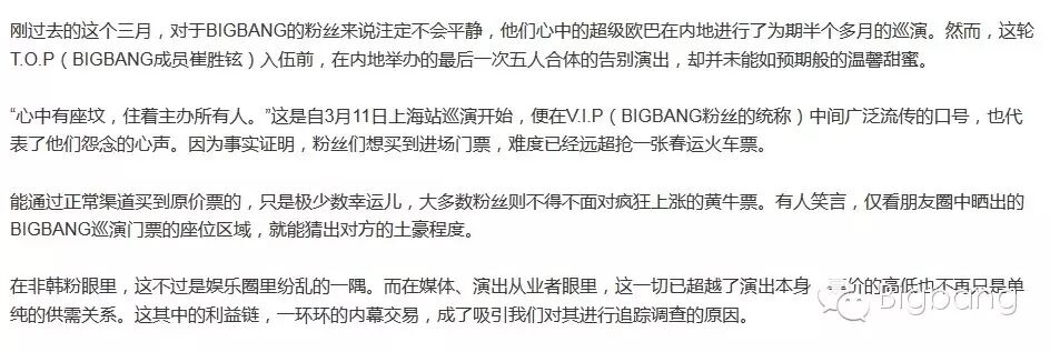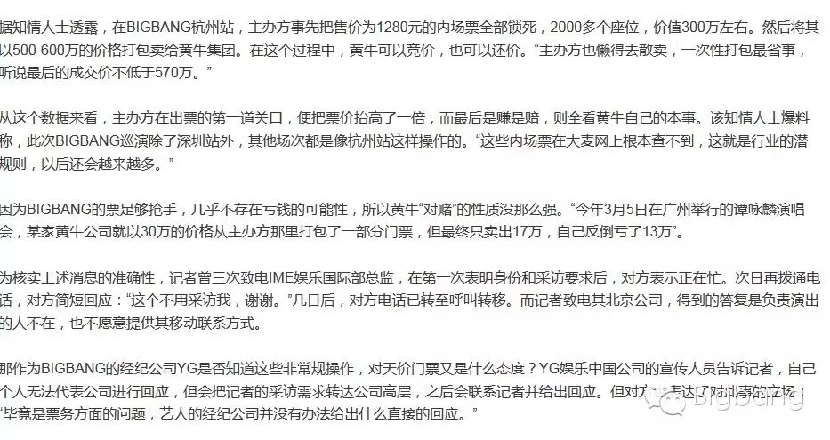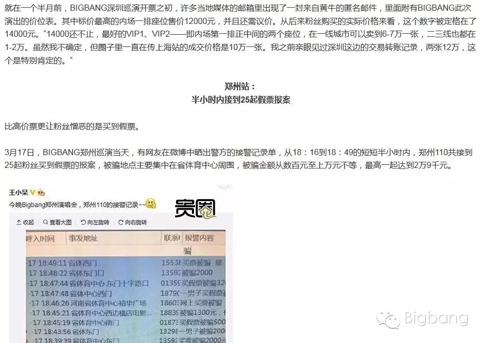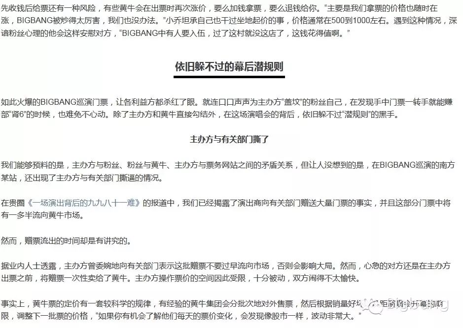 撕开BIGBANG巡演天价门票的口子: 黄牛已经集团化作战,一场能赚200万 。“心中有座坟,住着主办所有人。”这是自3月11日#BIGBANG上海站巡演开始,便在粉丝中间流传的口号。因为事实证明,粉丝们想买一张演出门票的难度,已经远远超过抢一张春运火车票了……详细观看下图全文: