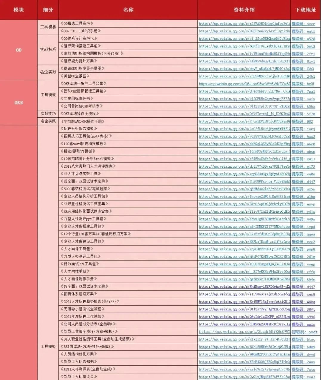 目前已按模块整理发布530+期HR资料,百度网盘总大小800G+