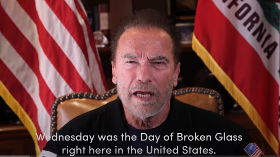 “星期三是美国版的‘水晶之夜’。”当地时间1月10日,好莱坞巨星、前加州州长施瓦辛格在推特发布了一段长视频,谴责1月6日国会骚乱事件,将其与1938年的纳粹德国袭击和屠杀犹太人的“水晶之夜”进行比较,并指责特朗普是美国“史上最差总统”。