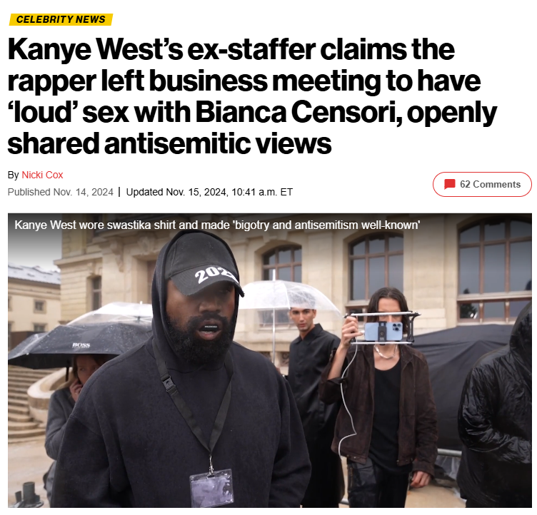 在起诉书的其他部分,Aficionado 详细描述了侃爷 Kanye West所谓的 "反犹太咆哮和阴谋",他声称这些每天都在上演。