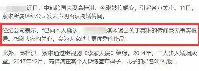 蔡琳清空了微博关注,似乎在切断与高梓淇的联系,随后蔡琳经纪公司否认两人离婚一事。之后这件事情不了了之,高梓淇事业上也没什么起色,蔡琳只在ins上分享一些动态。