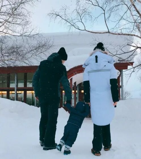 黄晓明带着他爸妈,Baby带着她爸妈,夫妻二人牵着小宝贝,一大家子手牵手在雪地里快乐的玩耍,祖孙三代其乐融融。