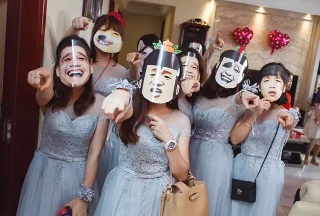 单菲:老公是个逗比,结婚的时候,给伴郎伴娘团每人配了个面具,当天可把她们玩坏了。