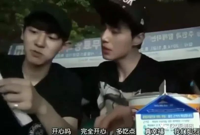 感觉好暖哦,问灿烈开心吗?让灿烈多吃一点,最关键的后面还有一句我们的灿烈,看到这里莫名的露出姨母笑怎么回事,两个人这也太甜了吧!不知道还以为你俩是情侣。后面灿烈也是表现的非常开心的样子,我们可以看见灿烈做了一个非常可爱的动作,萌到我了。