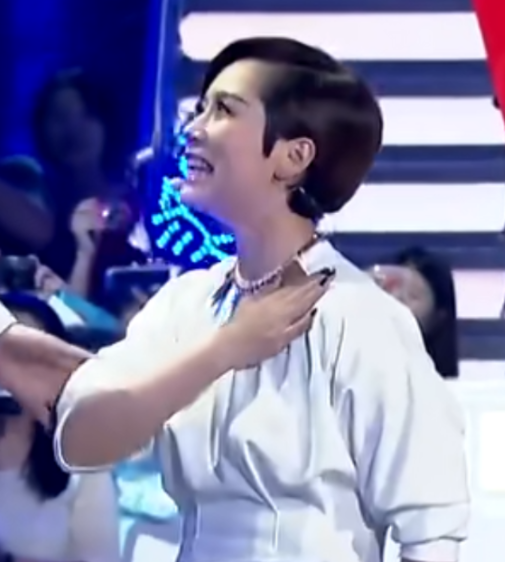 结束“你是我的神!!!”片段后,海清站起来还做了个拱手手势、对评委席说拜托了,随后潇洒微笑着走下舞台。