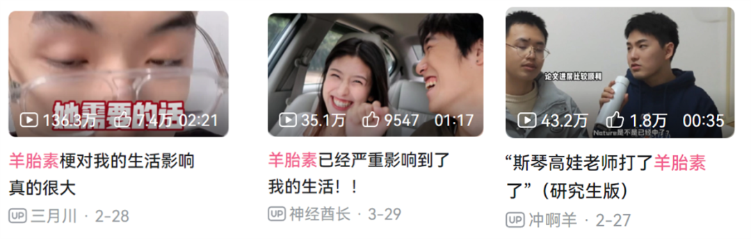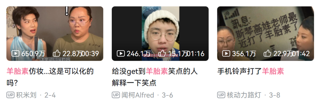 网易云上有数十个以“穷哈”为主题的歌单,B站上的羊胎素视频播放量加起来轻轻松松破千万。