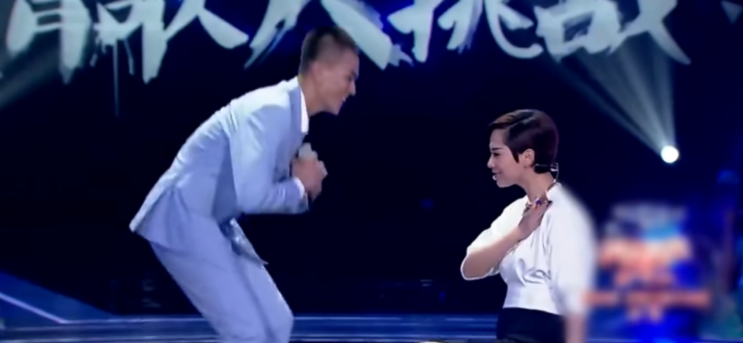 正在和欧豪PK的宁恒宇很尴尬,嘉宾都从评委席上跑下来和对手示爱了、这算什么事啊。
