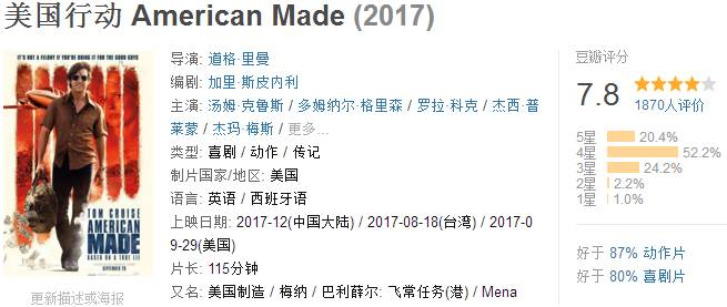 《美国行动》取材于美国大毒枭巴里·希尔(Barry Seal)的真实经历。阿汤哥在影片中身兼飞行员、毒枭、CIA卧底三重身份,表面上在为美国中情局工作,利用飞行员身份频繁往返于美洲各个国家窃取情报;同时又为美洲历史上最臭名昭著的国际贩毒集团——麦德林集团向美国走私毒品,单枪匹马开拓出从美洲丛林腹地空运毒品到美国境内的“新航线”。在美洲瞬息万变的政治格局之下,巴里·希尔毫无意外地卷入当时敏感又复杂的国际政治博弈中,每天与情报、枪支、毒品、洗钱种种犯罪行为打交道,同时又周旋在美国政府、军方、FBI以及美洲非政府武装之间,与他们有着错综复杂的关系,建立起令人难以想象的“空中走私帝国”。