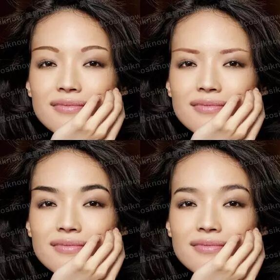 P了四种眉形在不同脸型上的示范图,有没有觉得,这简直就是换了个人?