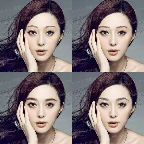 但是,桃心脸因为整体脸型的原因,并不适合过细过有棱角的眉毛。范爷如果换上这种细细的眉毛,也真的是完全不能忍啊。