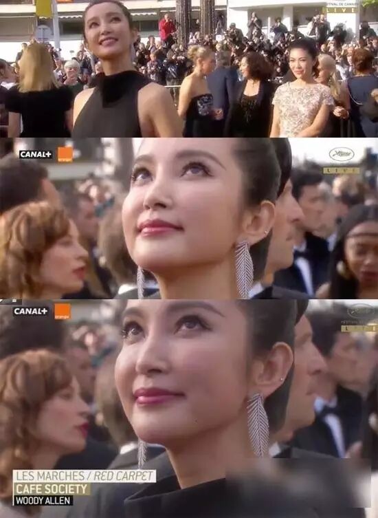 李冰冰是第一个出现在戛纳红毯镜头的华人女星,镜头虽然只有短短2秒,但是官方镜头给了她仰头微笑的瞬间一个大特写,羽毛耳饰格外抢镜,肤质饱满有弹性,像剥了壳的鸡蛋。