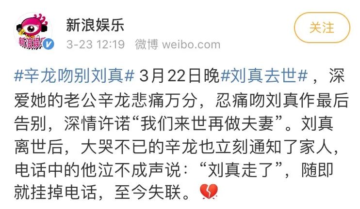 直到官媒发消息,看到刘真老公辛龙的离别许诺:“我们来世再做夫妻”,瞬间怅然若失。