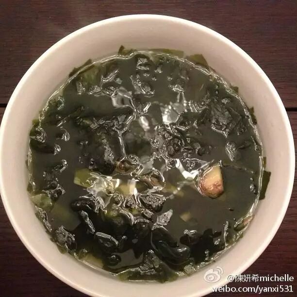 海带汤:海带的营养价值很高,富含蛋白质、脂肪、碳水化合物、膳食纤维、钙、磷、铁、胡萝卜素、维生素B1、维生素B2、烟酸以及碘等多种微量元素。对于那些要身材又要漂亮的人来说最好不过了,而且它又含有大量纤维每100克才还有12大卡,用它减肥也不会便秘。食用海带对人们的身体健康十分有益。海带虽好,但也不可以贪吃,请适量食用。同时由于海带味咸性寒,因此脾胃虚寒、肿胀、腹泻消化不良者需慎食。