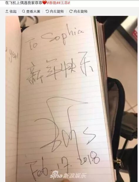 春晚刚过,有网友便在飞往大理的飞机上巧遇王菲,当时谢霆锋并没有陪伴左右。王菲还给她签了名,并祝福她新年快乐。