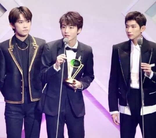 在活动内场,TFBOYS组合获得“最佳尖叫组合”荣誉,王俊凯、王源、易烊千玺三人同时登台领奖,发言前先是喊出“大家好,我们是TFBOYS”的标志性口号,随后三人一一发言,帅气十足。