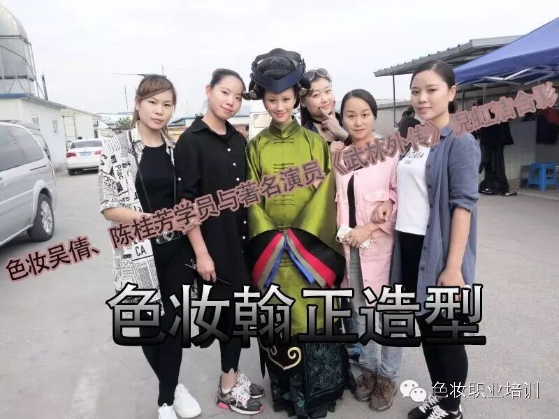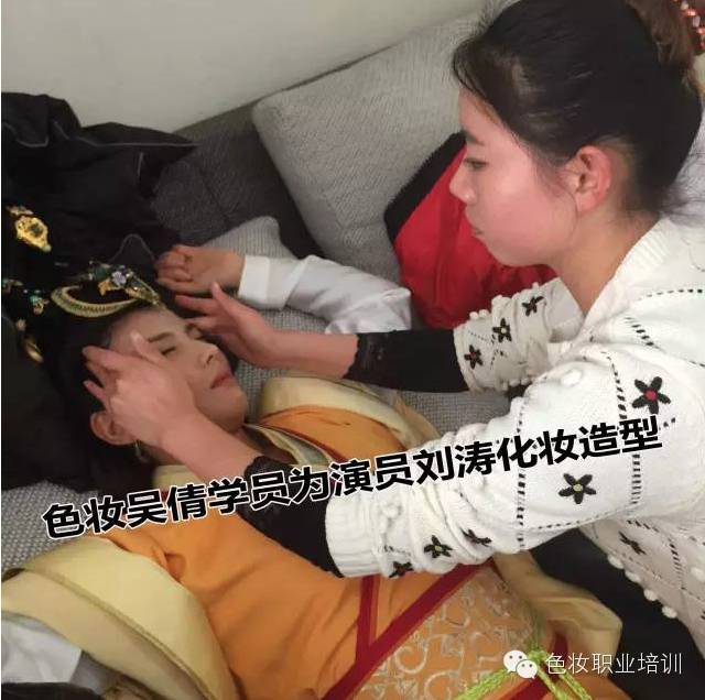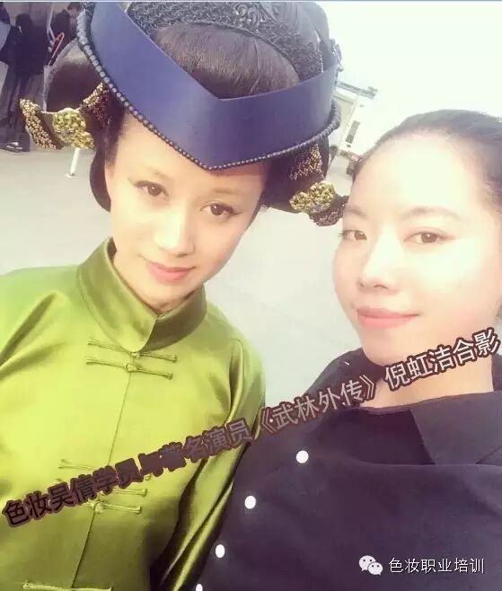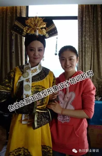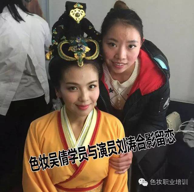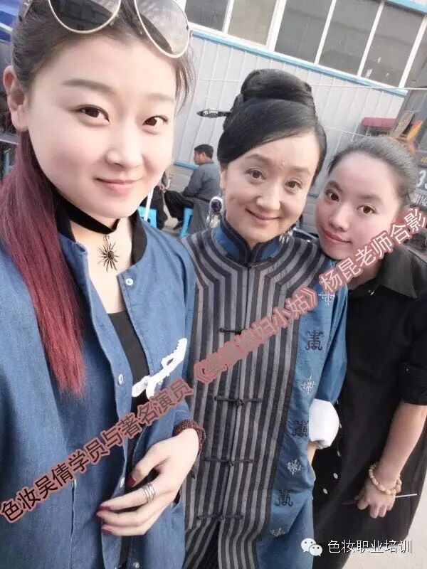 色妆学员吴倩、陈桂芳为了心中化妆道路的追求,选择了远赴北京学习。由于期间表现优秀,有了进剧组实战的机会。并有幸为出演过《武林外传》《蓝色骨头》的演员倪虹洁、出演过《辣妈正传》《生活启示录》的演员杨昆老师、出演过《打狗棍》《勇敢的心》演员于毅化妆造型。可谓真正的走进了剧组,有了对影视剧组化妆更深的认识。相信随着学习的推进和自己的努力,往后必将为越来越多的大牌明星化妆,甚至是天王级的人物。